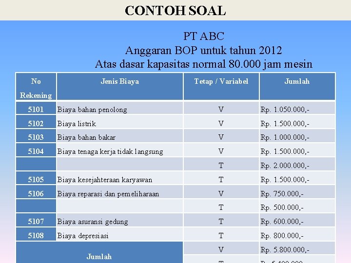 Soal Anggaran Bop / Biaya Overhead Pabrik Adalah Metode Contoh - Contoh soal dan penyelesaian departementalisasi bop.