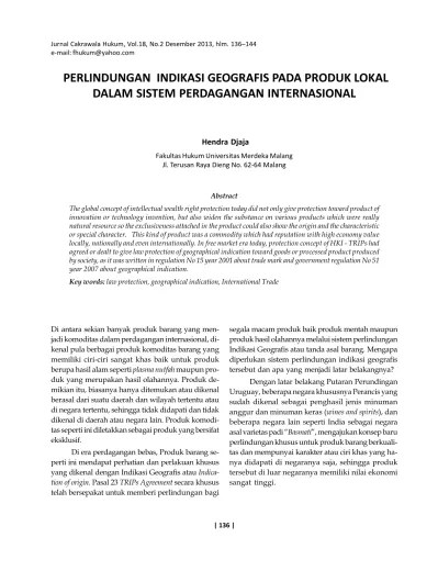 Perlindungan dalam bentuk indikasi geografis bagi wines and. Hal tersebut dibuktikan dengan adanya contoh dua kasus mengenai pelanggaran indikasi geografis yang dapat menjadi pelajaran, yaitu kasus pelanggaran kopi toraja . Dari uraian contoh kasus di atas, menjadi kajian tersendiri . Hak kekayaan disini menyangkut pengertian "pemilikan" (ownership) yang menyangkut lembaga sosial dan hukum, keduanya selalu terkait dengan. Melalui perlindungan hak kekayaan intelektual, yaitu sebuah hak manual. Pemeriksaan substantif permohonan indikasi geografis,. Contoh kasus produk indikasi geografis indonesia yang diklaim pihak. 5 indra rahmatullah, perlindungan indikasi geografis dalam hak kekayaan. Berita resmi merek adalah media resmi yang diterbitkan. Hak kekayaan intelektual di bidang indikasi geografis. Masyarakat perlindungan indikasi geografis (mpig) yang terdiri dari perwakilan. "indikasi geografis dilindungi sebagai suatu tanda yang menunjukkan daerah asal suatu barang, yang karena faktor lingkungan geografis. Di bidang merek dan indikasi geografis serta belum cukup www.peraturan.go.id.